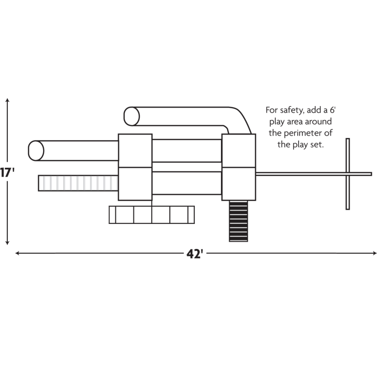 This playset includes monkey bars, a ramp, sagging bridge, easy access stairs, two spots for sandboxes below the towers, and two connected towers with different levels for all sorts of climbing fun! Twin slides, a ball swing, tire swing, trapeze rings, and a belt swing make for loads of fun all summer long!