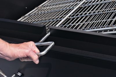 - Grill body is made of 13-gauge welded steel and painted with black heat-resistant paint in an attractive matte finish.