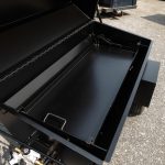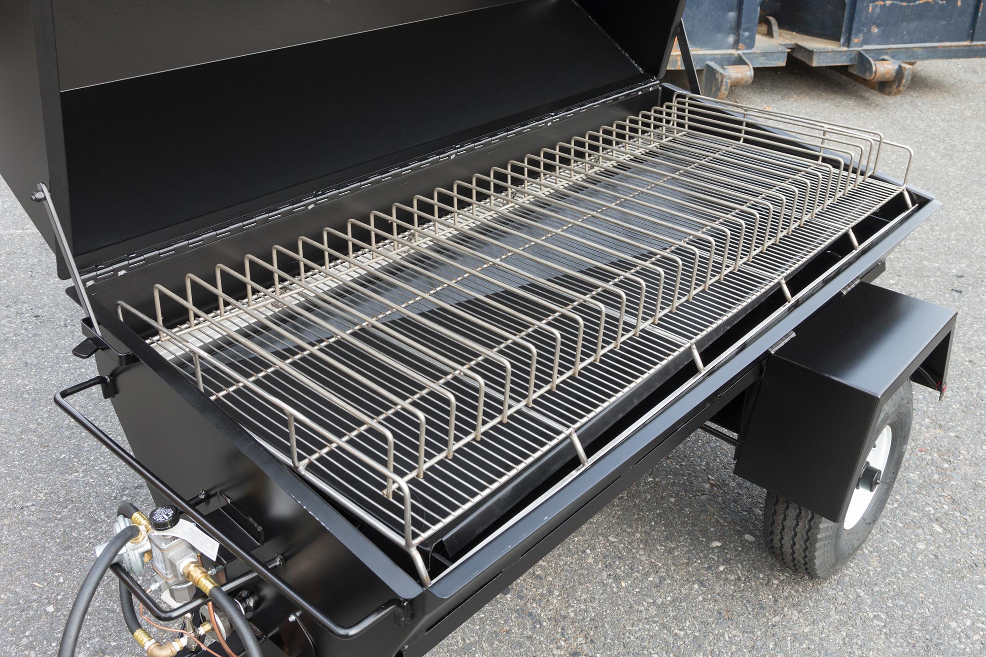 - Trailer has components welded to the bottom of the roaster and features a 2” ball hitch and safety chains, heavy-duty wheel jack, rubber torsion axle, road-worthy tires, and DOT-compliant flush-mount LED lights, reflector strips, and VIN plate.