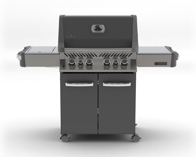The Ambiance® 500 Grill by Napoleon is the best combination there is! This beautiful charcoal enameled grill provides the perfect tools to do the rotisserie, searing, grilling, baking and smoking! Heavy stainless steel grates are easy to clean and provide the searing marks restaurants are famous for! The lid hinges in the center which means that, when the lid is open, only half the grill is exposed and much less heat is lost.