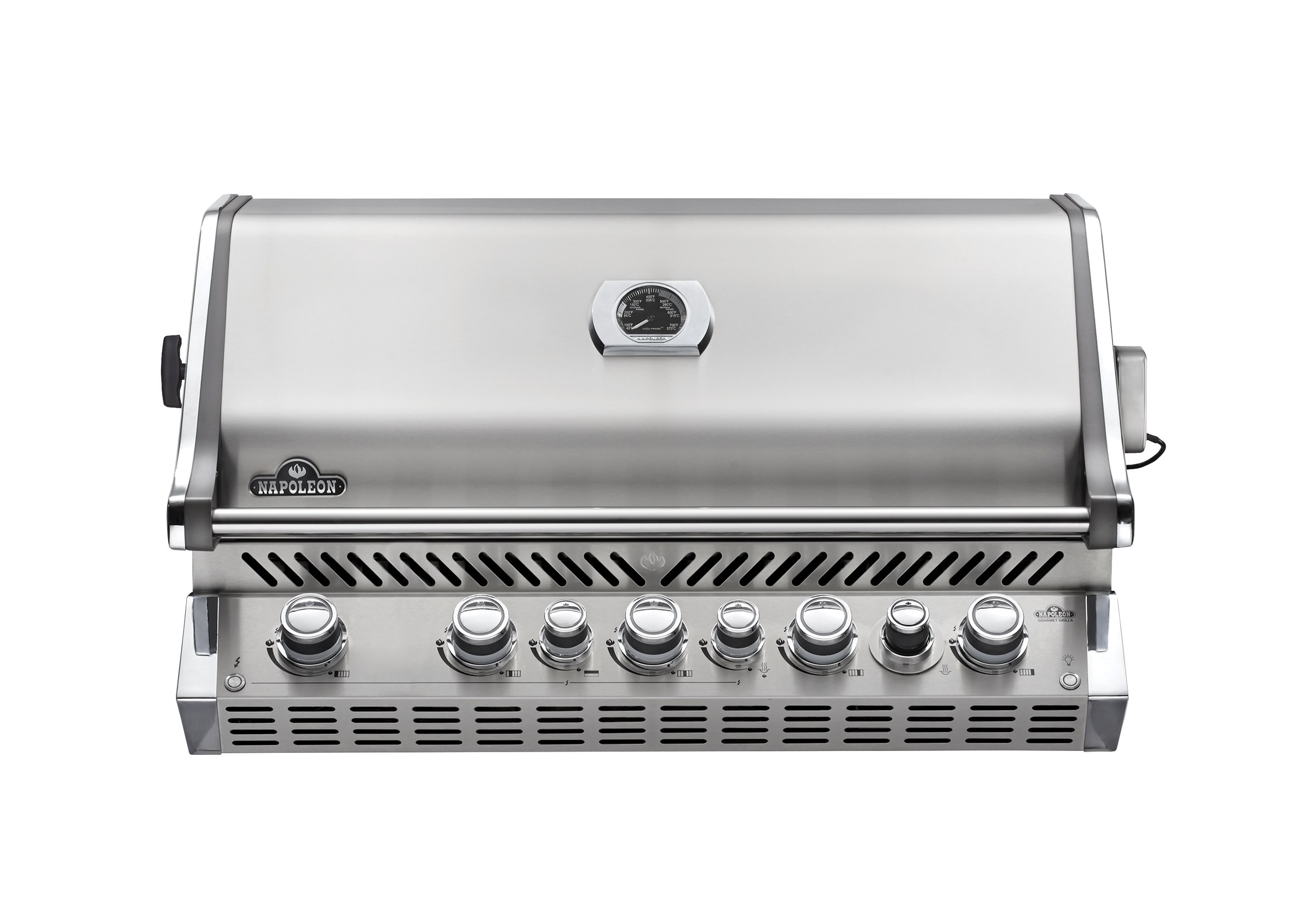 A gourmet outdoor kitchen deserves to have a big and beautiful grill. The Built-in Prestige PRO™ 665 Natural Gas Grill with Infrared Rear Burner features seven burners of grilling bliss. Durable stainless steel features chrome accents for luxury and durability. Grill after dark with blue NIGHT LIGHT™ backlit knobs. SafetyGlow turns the lights red when a burner is in use. Know which burners are lit so you can get the perfect sear, or ideal indirect grilling temperature. The oven-like performance of this grill allows you to bake and roast with ease, sear over high heat, and the rear burner makes delicious rotisserie meals in no time. You’ll know it’s a Napoleon with the iconic WAVE™ cooking grids for those distinctive sear marks. The integrated smoker tube and dedicated burner can even turn this grill into a smoker, while interior lights let you grill well past dark. Perfect and professional, the PRO™ 665 Built-in Grill Head is the perfect grill for your outdoor kitchen.