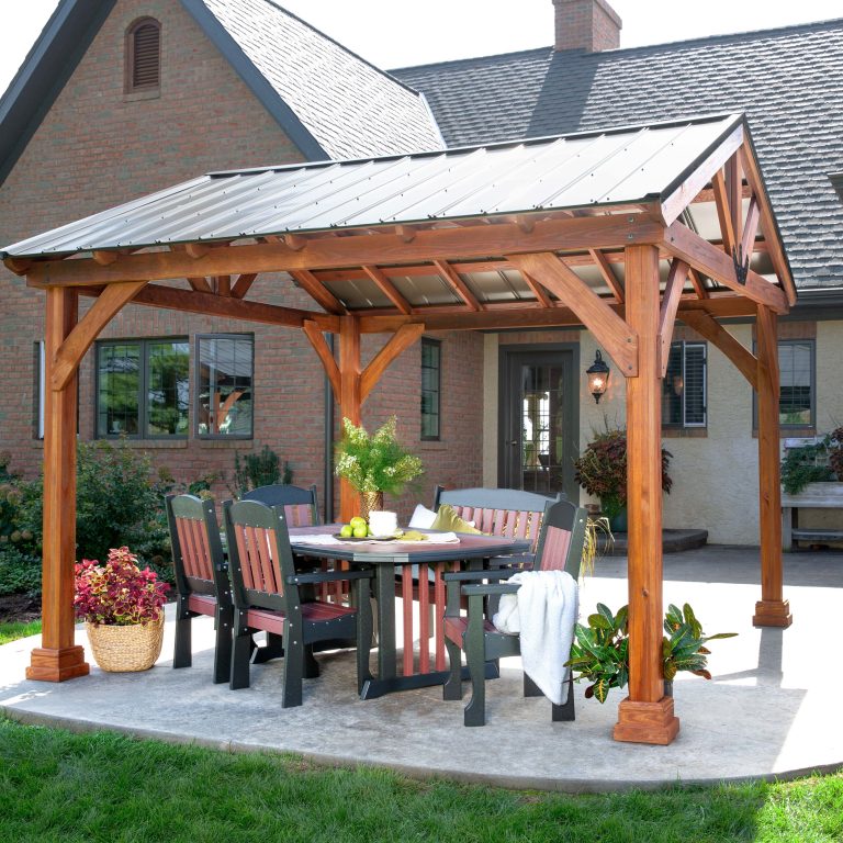 The Poly Outdoor Dining Collection feature the durable, maintenance free poly material. Choose between the old world styled English Garden and signature curved back Adirondack Dining sets or mix and match. Color choices are available for both sets.