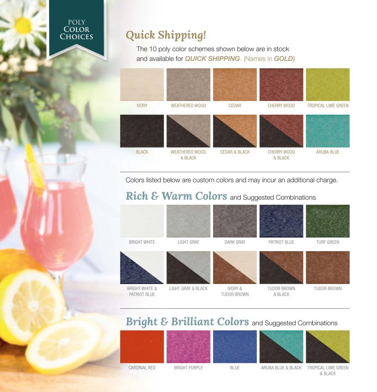 Poly material won’t crack, rot, split and the colors runs throughout the lumber. So, small nicks and scratches never need to be touched up. It’s also very easy to maintenance, all it needs is an occasional washing with mild dish detergent and rinsing to keep it looking brand new.