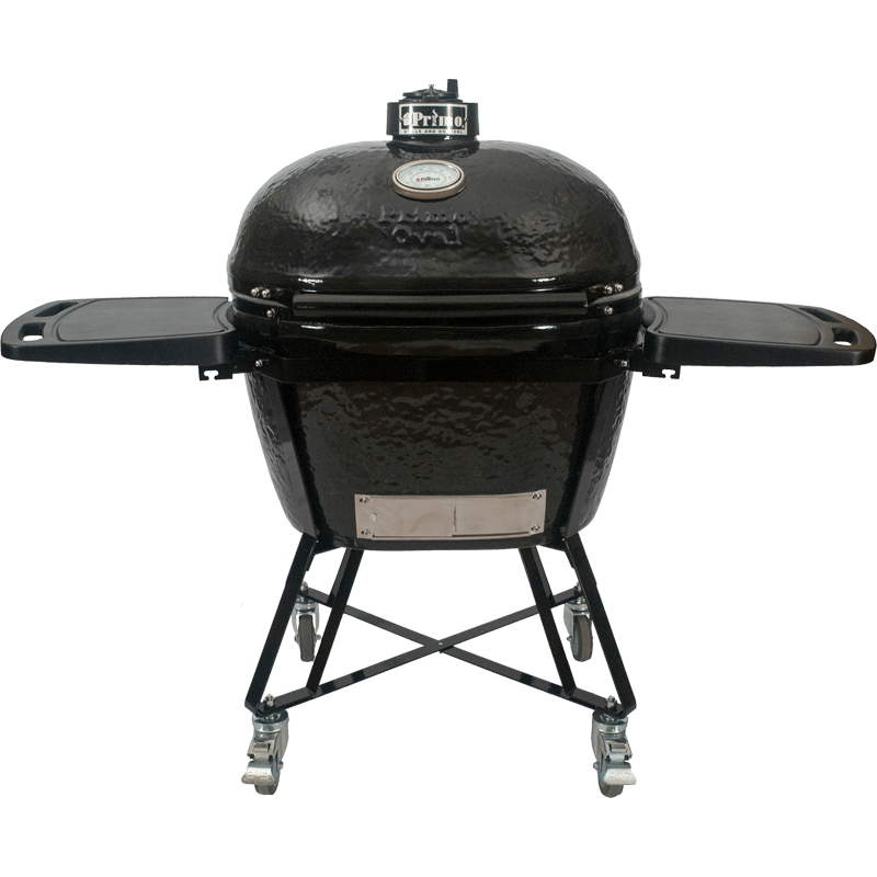 Our most popular ceramic grill, and no wonder. It offers the largest cooking area and the patented oval shape offers superior cooking efficiency and accessibility. Grill, bake, roast or smoke any food.