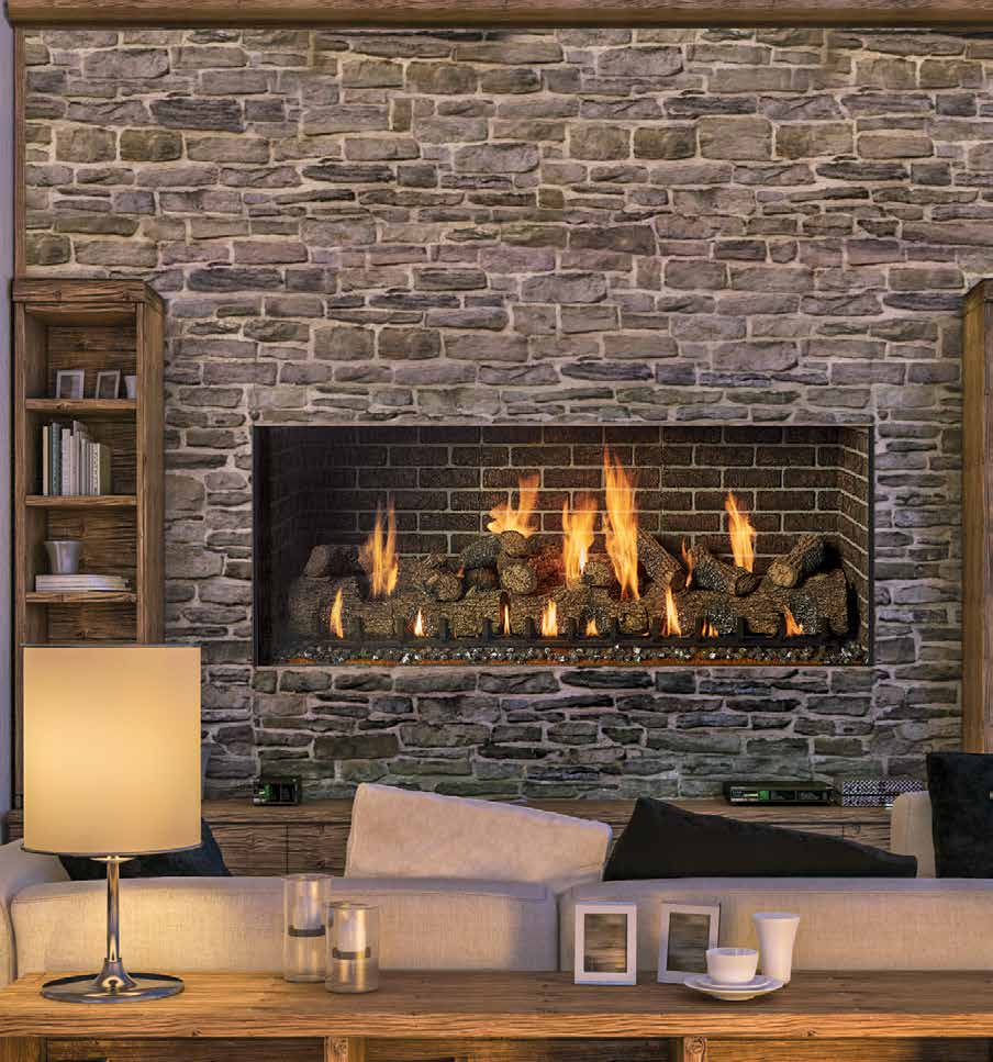 • Timber Fire™ Lodge style high definition log set and grate. 9 piece log set on the 48 x 30 models, 15 piece log set on the 72 x 30 models