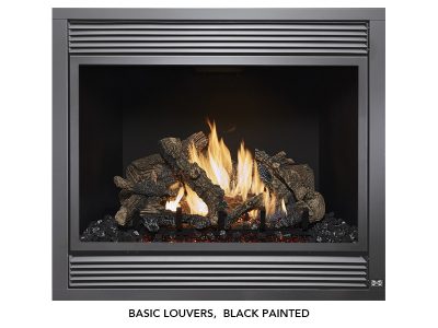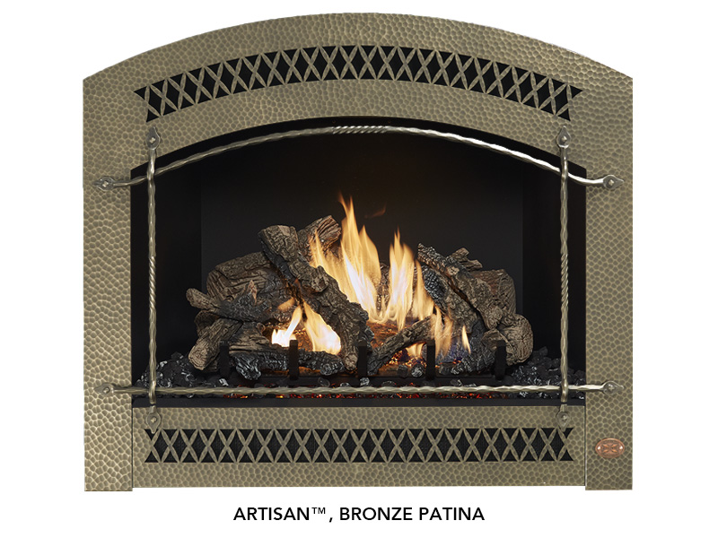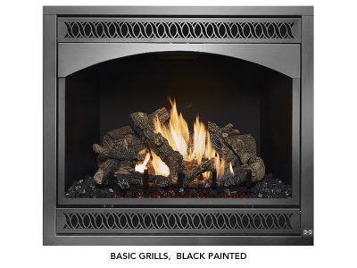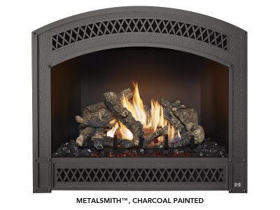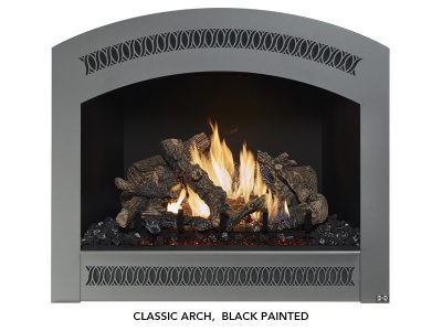 The 864 TRV 31,000 BTU fireplace is perfect for anyone looking to display a big beautiful fire that provides supplemental year-round heat to spaces up to 1,400 square feet. This top or rear vent (TRV) fireplace features our selection of beautiful designer faces and includes new Ember-Glo ember bed lighting, adjustable overhead Accent Lights, the CoolSmart TV Wall option and your choice of stunning 10-piece Classic Oak or Birch log sets. In addition to these great features, this Deluxe model comes standard with the GreenSmart Remote Control and 180 CFM convection fan.