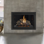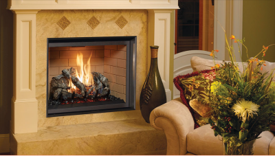 The 864 TV 40K CF is FireplaceX ‘best in class’ fireplace. This top vent (TV) 40,000 BTU fireplace is ideal for heating larger homes and living spaces up to 2,000 square feet. The 864 TV 40K Clean Face resembles a traditional masonry fireplace with very little metal around the fireviewing glass. This model includes new features such as Ember-Glo™ ember bed lighting, adjustable overhead Accent Lights, the optional CoolSmart TV Wall™ and your choice of our beautiful 10-piece detailed Classic Oak or Birch log sets. This Deluxe fireplace also features the GreenSmart® Remote Control and 180 CFM convection fan.