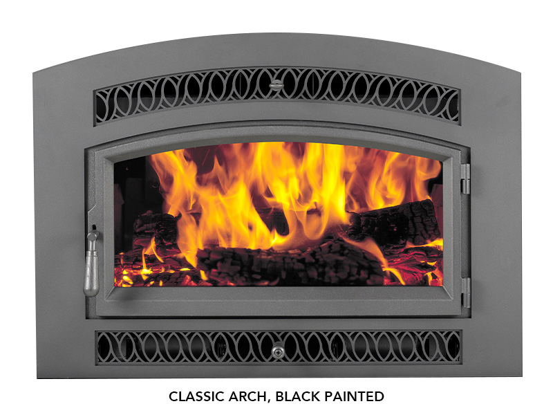 The Medium Flush Wood NexGen-Fyre Insert converts a wasteful masonry or zero clearance fireplace into an excellent heat source that can provide reliable warmth at a fraction of the cost of electricity or oil. With a three-sided convection chamber and standard 180 CFM convection fan, this insert is designed to deliver the maximum heat output from the wood you burn due to our advanced NexGen-Fyre™ technology. This insert features a sleek, flush design and is created out of the highest quality materials to last for years to come. This model features a signature arched door and face design.