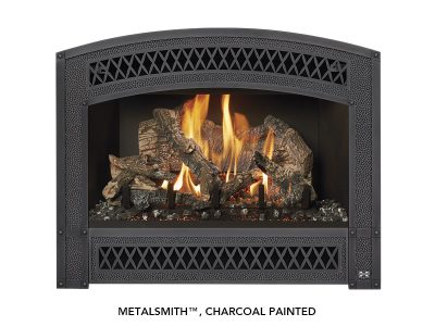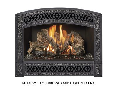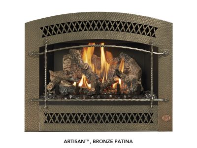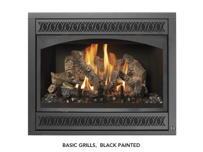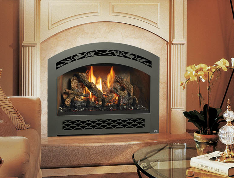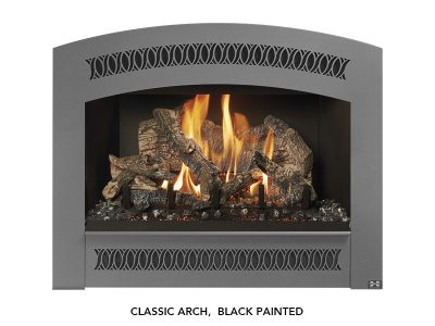 The 564 TRV 35K Deluxe is a mid-sized fireplace that delivers big heat. With a 35,000 BTU input and high heat transfer ceramic glass, this high output model is ideal for larger spaces in your home or colder climates. This fireplace features massive dancing flames and realistic Ember-Glo™ ember bed lighting, with your choice of highly detailed 10-piece Classic Oak or Birch Log Sets.