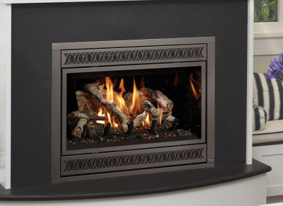 The 564 Top Vent (TRV) 35K is available with our wide selection of designer faces. This Deluxe fireplace features the GreenSmart Remote Control, 180 CFM Convection Fan, Accent Lights, and the optional CoolSmart TV Wall Kit.