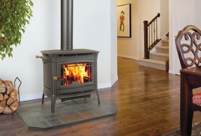 Lined with 1 1/4″ soapstone, our cast iron stoves provide a more comfortable heat than traditional cast iron wood stoves.