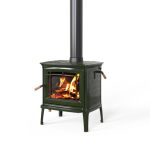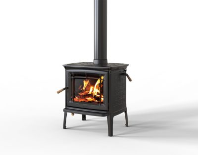 The Shelburne is a stylish and efficient stove with intricate designs, finely detailed cast iron, and a porcelain enamel finish.