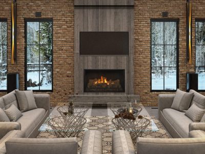 This landscape design series offers an awe-inspiring option for your home. A lower profile fireplace that will work with a large TV above the fireplace while still getting the look of a traditional fireplace.