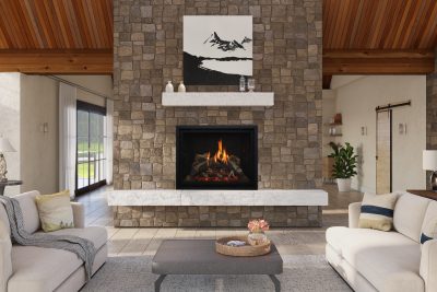 Kozy Heat’s innovative EVO Elevated Burners bring fire to life like never before. Traditional fireplaces rely on flat, two-dimensional burners positioned on the firebox floor. EVO changes that by raising the flame, projecting it along and around the contours of two signature logs. The result is a fire with true depth, height, and movement, remarkably close to a real wood-burning flame.