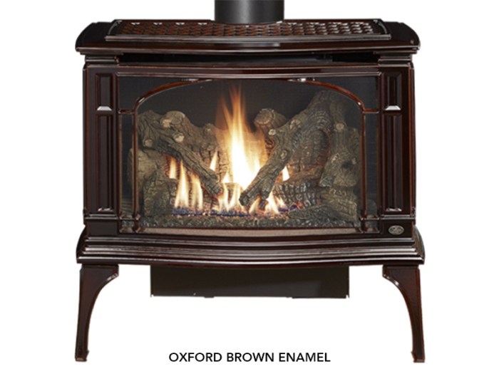 The Greenfield™ is Lopi’s largest cast iron gas stove. This powerhouse of a heater produces up to 40,000 BTUs and heats up to 2,000 square feet. The number one feature of the Greenfield is its massive, three-sided wrap around ceramic glass fire viewing area, which comes standard with 2015 ANSI-compliant invisible safety screens. Another amazing feature of the Greenfield is its downward pointing adjustable accent light which beautifully highlights the award-winning Ember-Fyre burner and interior of the stove, whether is heat is on or off.