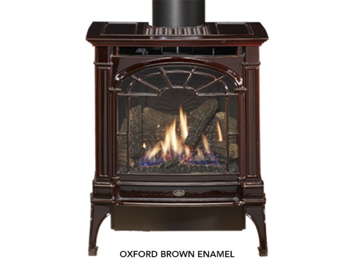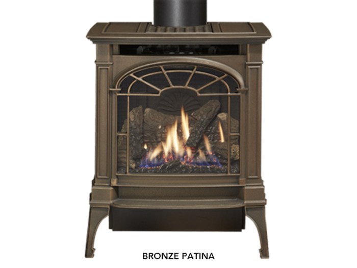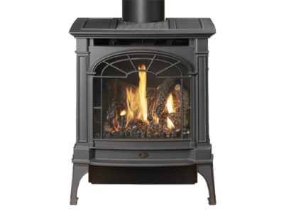 The Northfield™ cast iron gas stove is a true work of art. It’s classical Early American design and three-side bay window fireview more resembles a piece of fine furniture than a gas stove. And despite its size, the Northfield™ boasts an incredibly large 283 square inches of ceramic glass – which highlights the realistic wood-like fire from any angle in the room.