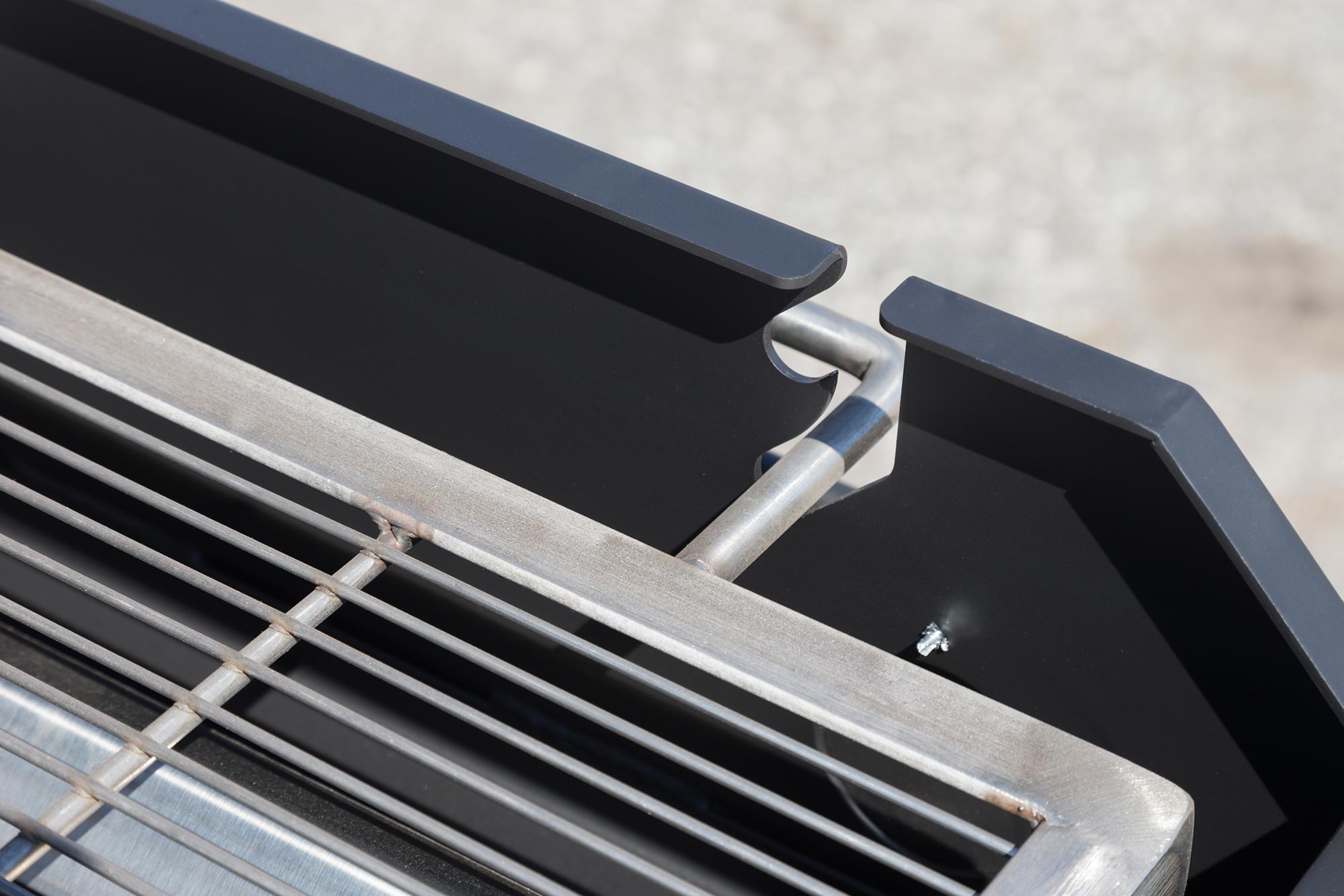 - Grill body is made of 13-gauge welded steel and painted with black heat-resistant paint in an attractive matte finish.
