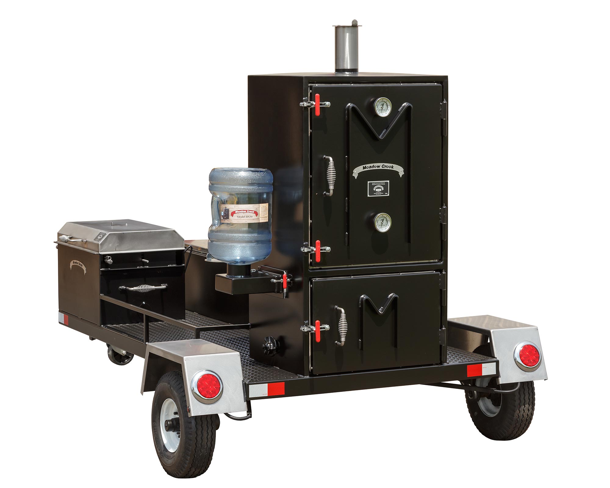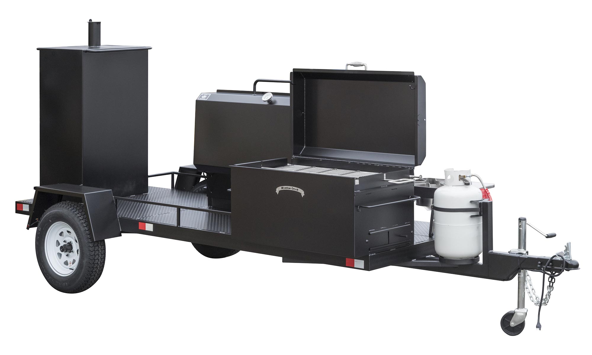 - Trailer is built on a tubular frame and features a 2” ball hitch and safety chains, heavy-duty wheel jack, rubber torsion axles, road-worthy tires, and DOTcompliant flush-mount LED lights, reflector strips, and VIN plate. Meadow Creek is a licensed trailer manufacturer and can provide a certificate of origin for trailer models.