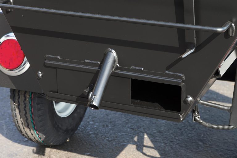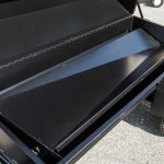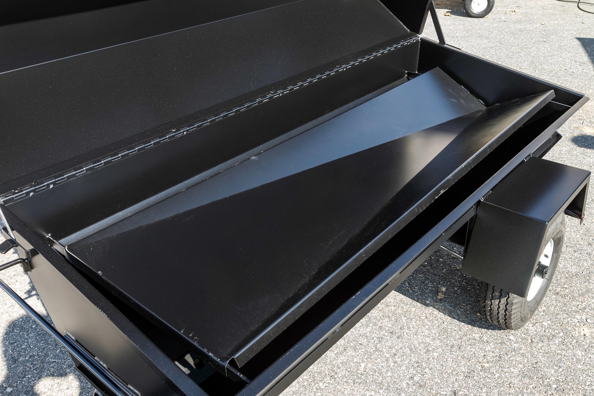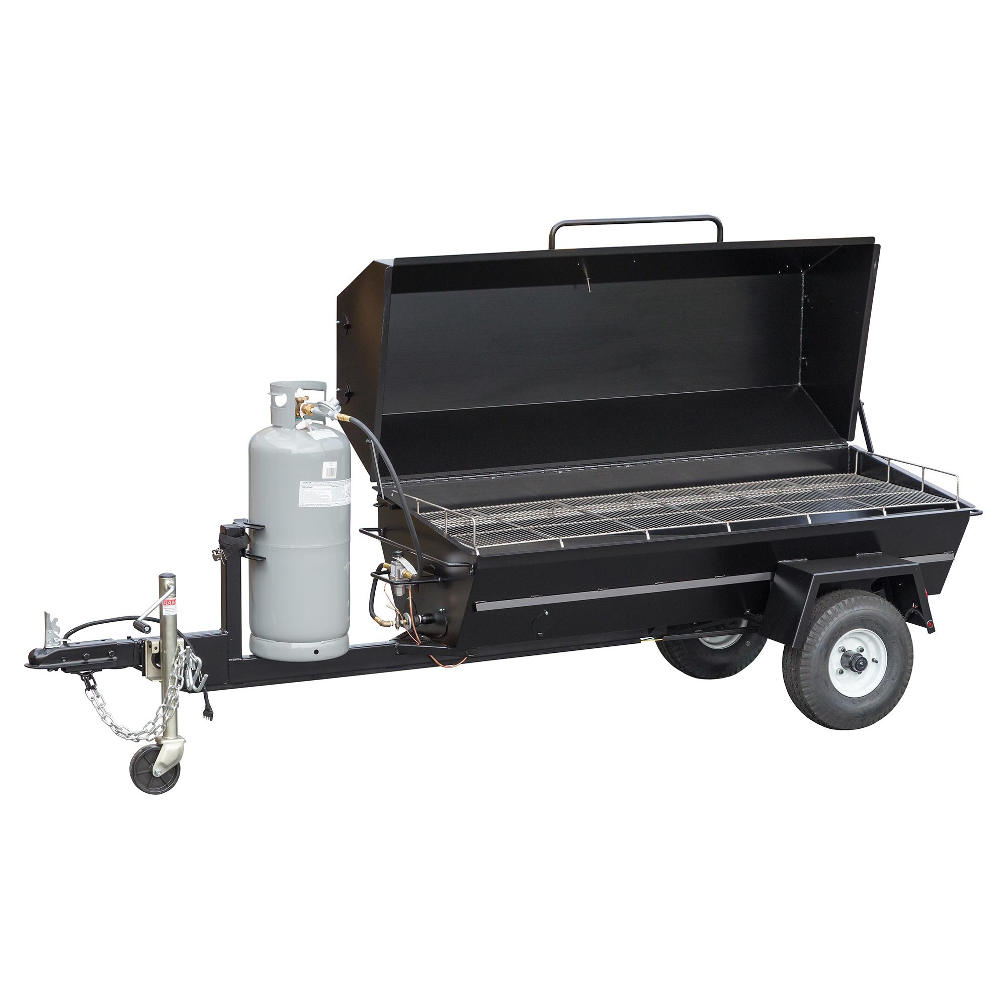 - Trailer has components welded to the bottom of the roaster and features a 2” ball hitch and safety chains, heavy-duty wheel jack, rubber torsion axle, road-worthy tires, and DOT-compliant flush-mount LED lights, reflector strips, and VIN plate.