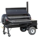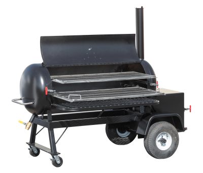 This smoker comes standard with “extras” such as food grade stainless steel grates and a slide-out ash pan. This innovative ash pan makes clean-up quick and easy and helps you get more heat out of the same amount of fuel since the ashes can fall away from the fire. 18″ tires and locking casters make it easy to move the smoker on hard surfaces and lock it into place.