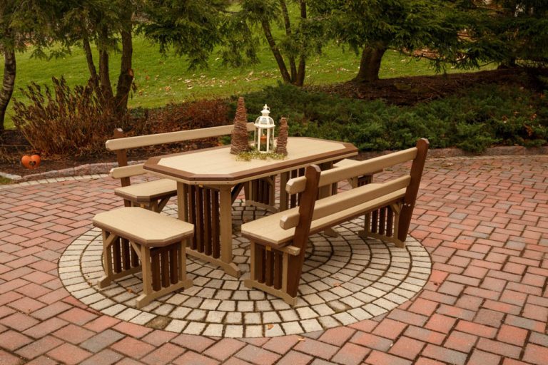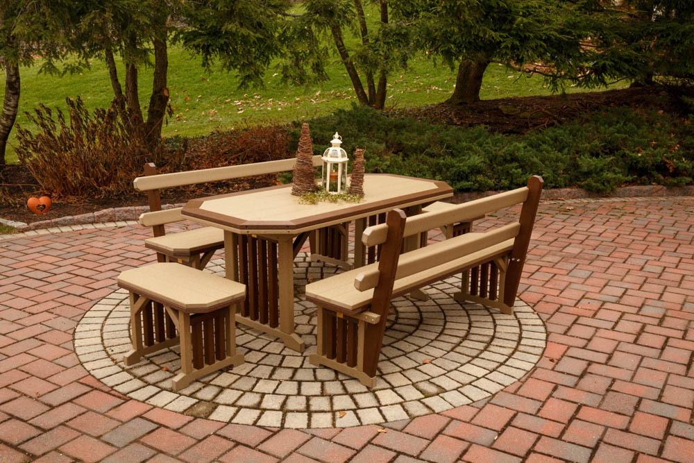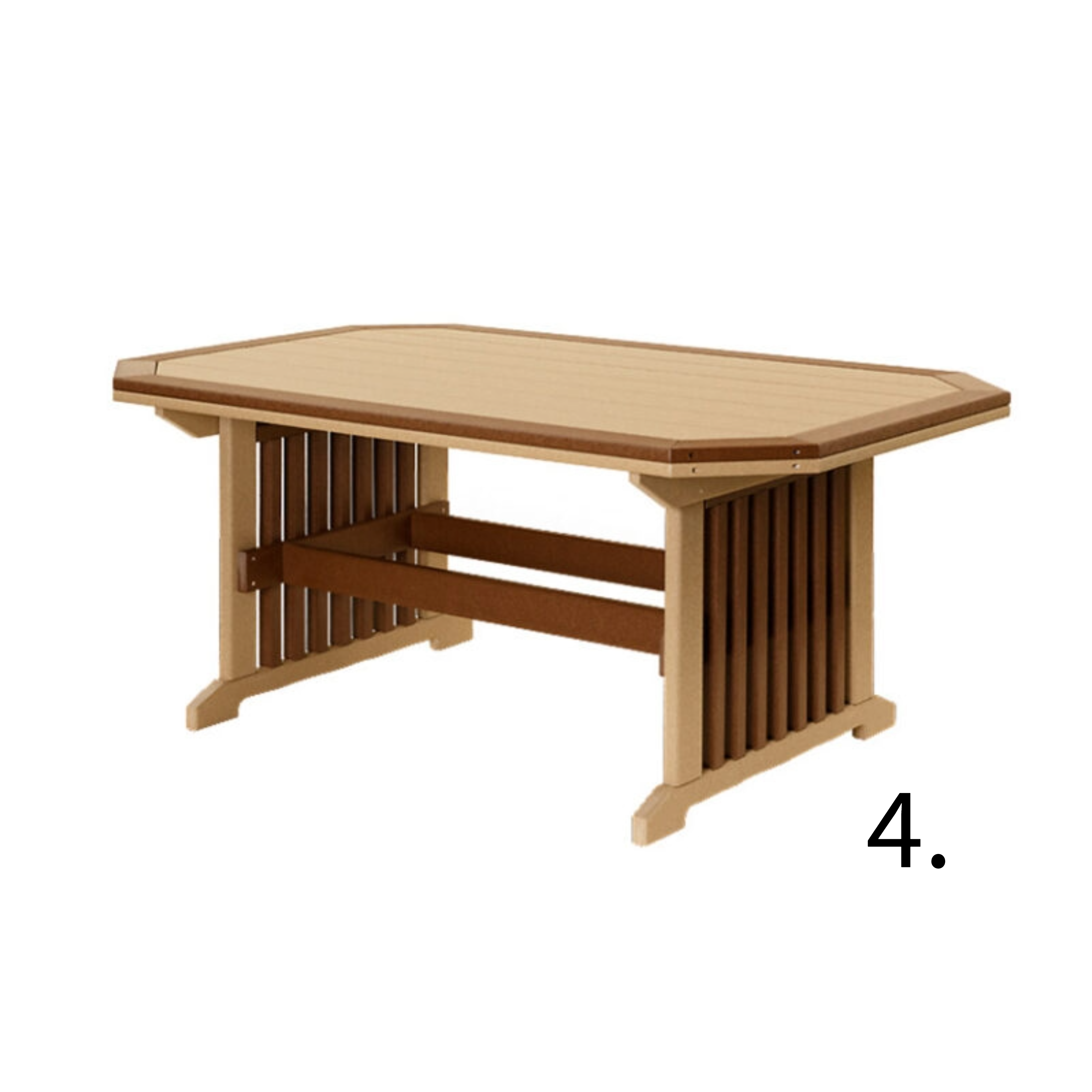 Crafted from recycled poly lumber, our outdoor table sets offer exceptional durability, resisting rot and other forms of wear commonly associated with traditional wooden furniture. With an array of colors available, poly furniture effortlessly adapts to any environment. Select your outdoor table and chairs set now and elevate your outdoor experience!
