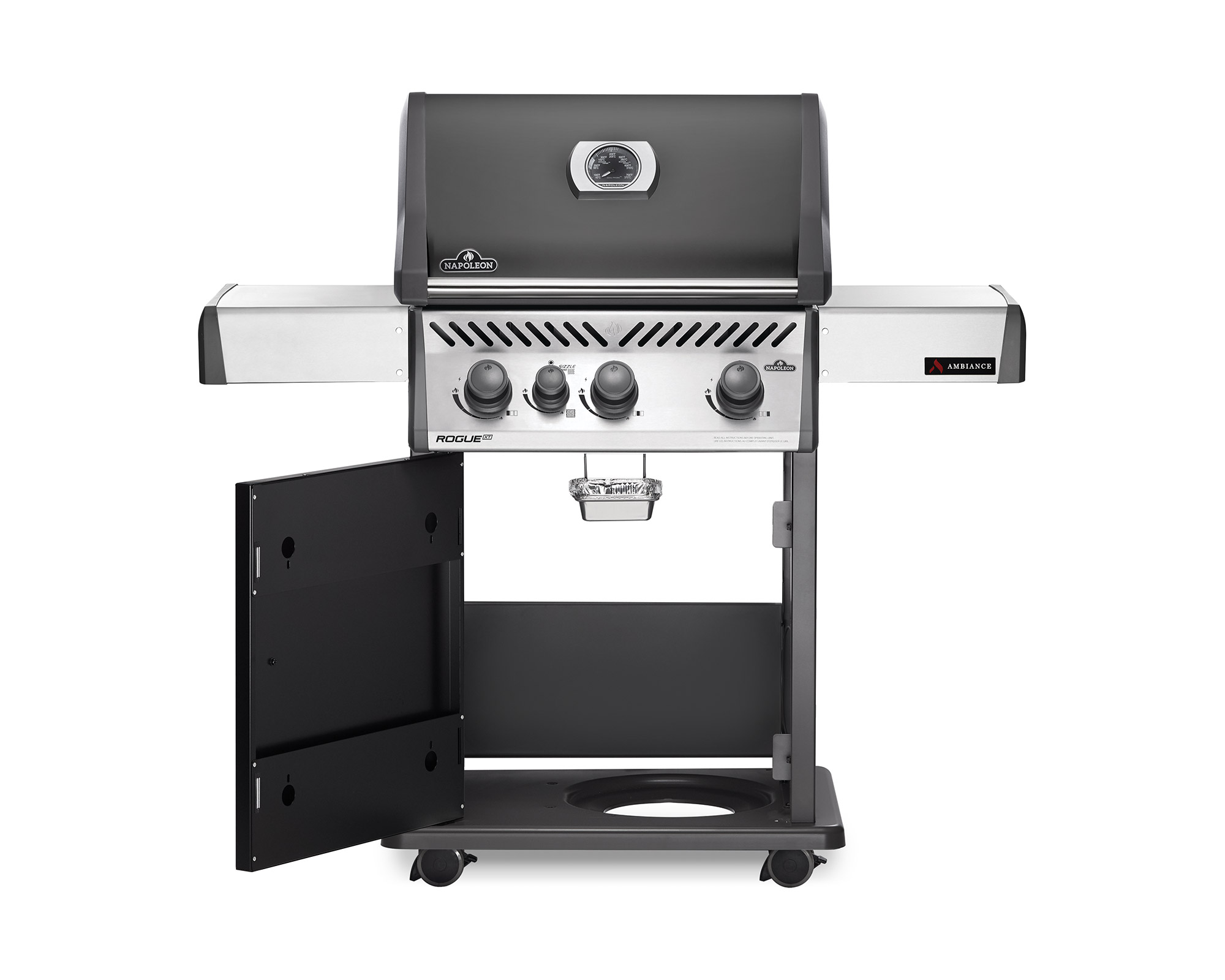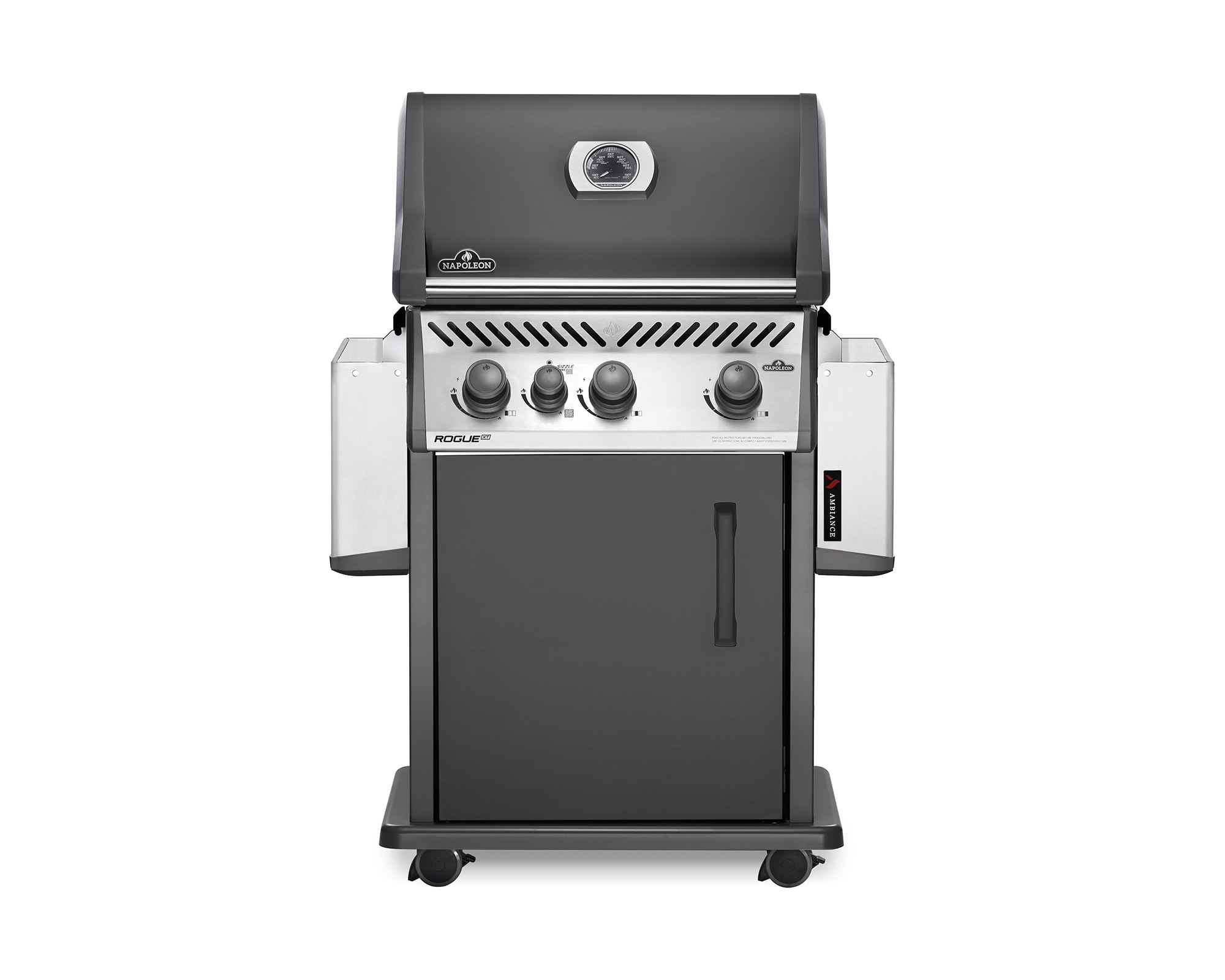 The Ambiance® 425 XT BBQ Grill by Napoleon is the perfect upgrade to your grilling game! The charcoal enameled color gives it the prestige you are looking for. The stainless grids and warming rack are easy to clean and durable. The true infrared side burner is set just right to sear steaks to perfection. The ignition system is set with a two-stage process so it will perform every time you need it.
