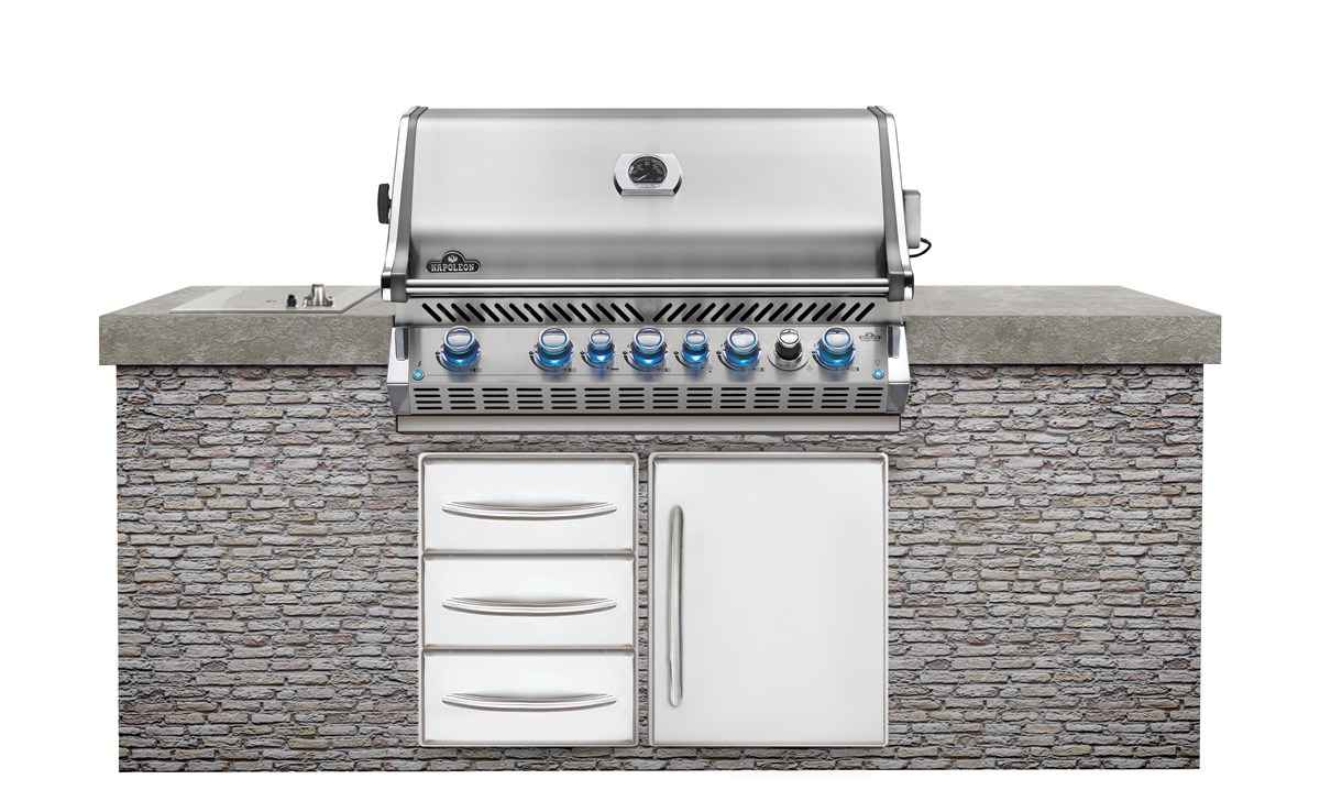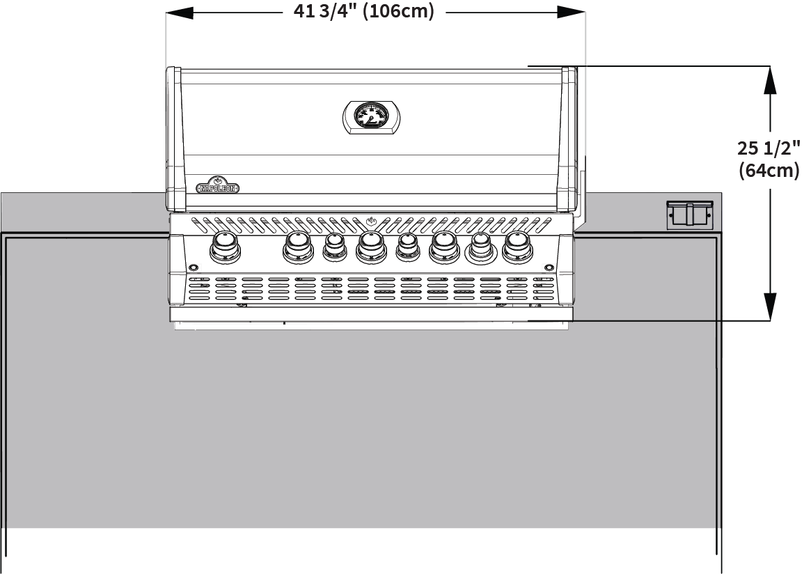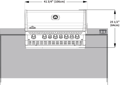 A gourmet outdoor kitchen deserves to have a big and beautiful grill. The Built-in Prestige PRO™ 665 Natural Gas Grill with Infrared Rear Burner features seven burners of grilling bliss. Durable stainless steel features chrome accents for luxury and durability. Grill after dark with blue NIGHT LIGHT™ backlit knobs. SafetyGlow turns the lights red when a burner is in use. Know which burners are lit so you can get the perfect sear, or ideal indirect grilling temperature. The oven-like performance of this grill allows you to bake and roast with ease, sear over high heat, and the rear burner makes delicious rotisserie meals in no time. You’ll know it’s a Napoleon with the iconic WAVE™ cooking grids for those distinctive sear marks. The integrated smoker tube and dedicated burner can even turn this grill into a smoker, while interior lights let you grill well past dark. Perfect and professional, the PRO™ 665 Built-in Grill Head is the perfect grill for your outdoor kitchen.