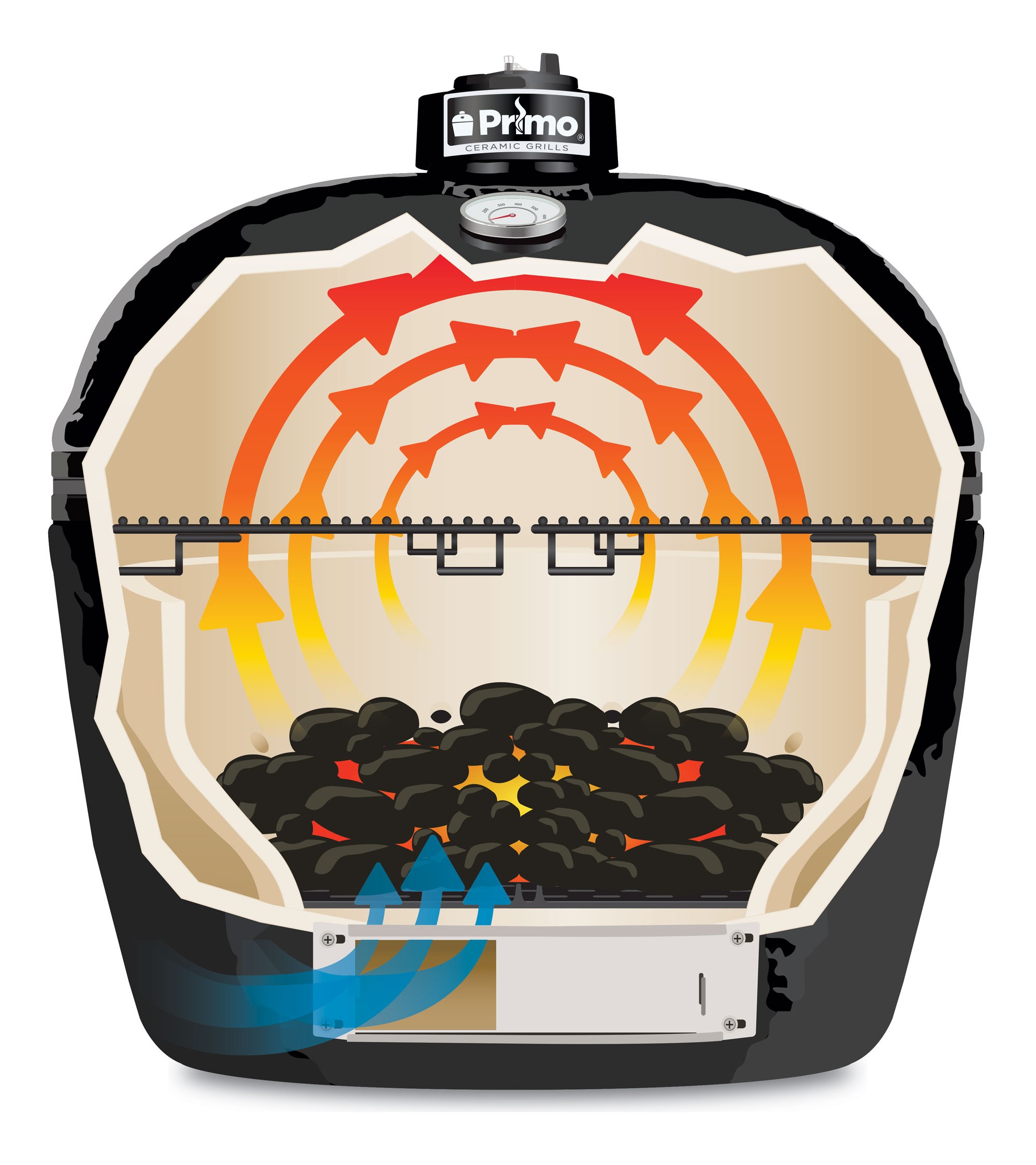 Our most popular ceramic grill, and no wonder. It offers the largest cooking area and the patented oval shape offers superior cooking efficiency and accessibility. Grill, bake, roast or smoke any food.