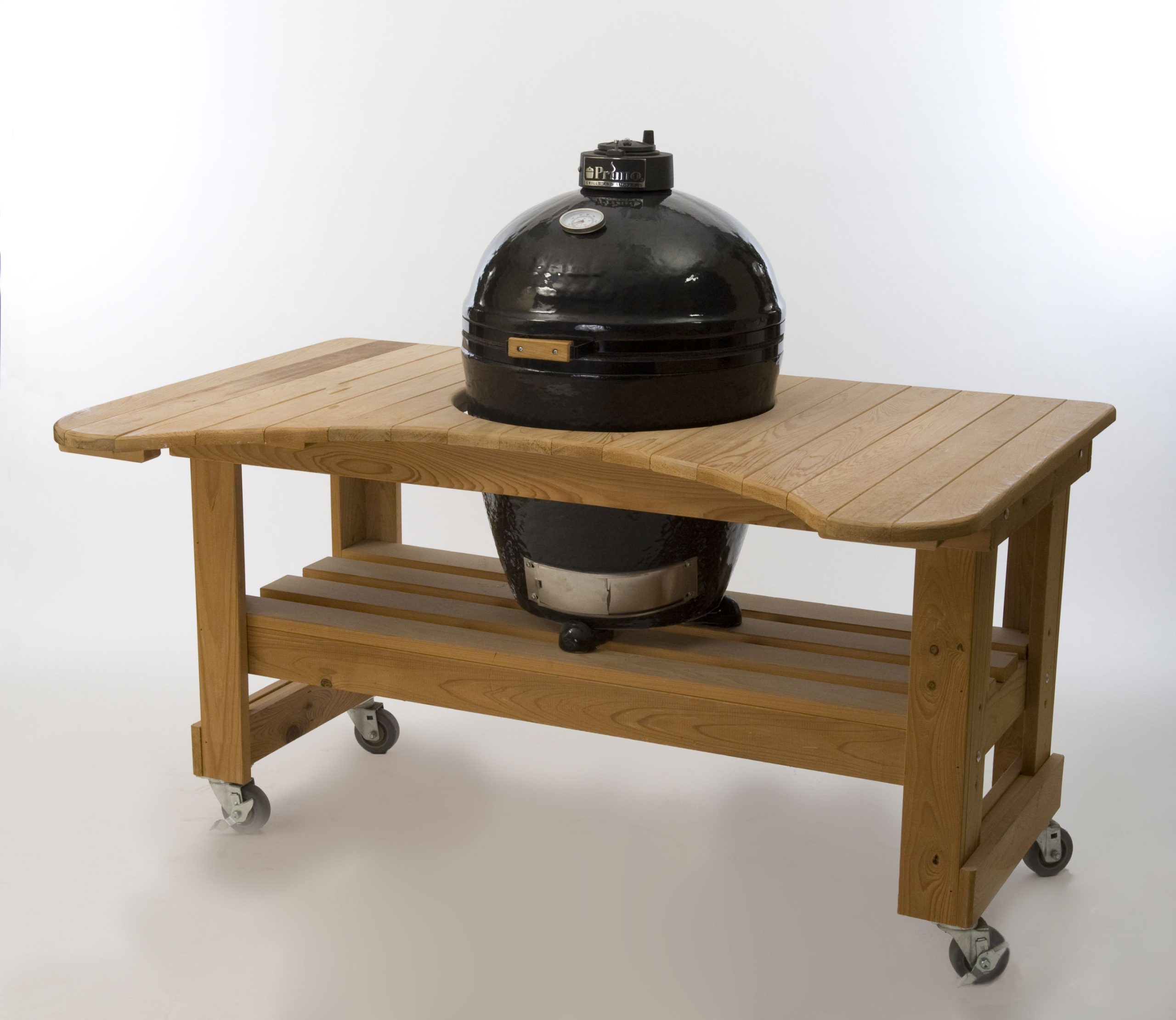 Our traditional 18.5″ round Kamado style grill. Features an ergonomic handle, Cradle Stand, FDA approved food safe Side Tables, Ash Tool, and Grate Lifter.
