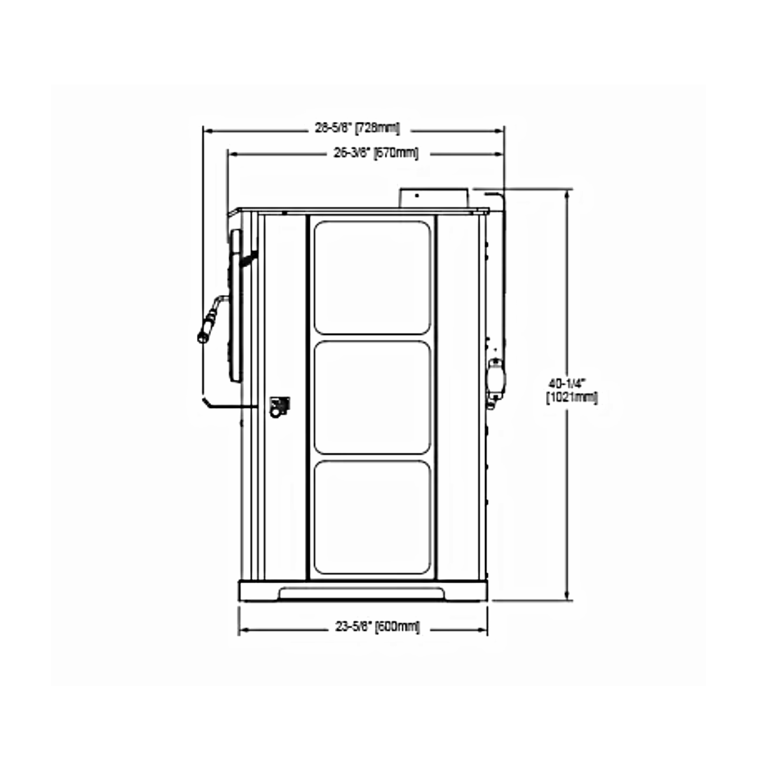 The Discovery III Wood Stove comes with a space-saving wood storage bin designed into the stove and comes outfitted with Automatic Combustion Control technology to help with lighting your fire and giving a nice boost to the flame if needed. Change the look of this stove by swapping out the 12×12 ceramic panels on the side when you need a change of scenery.