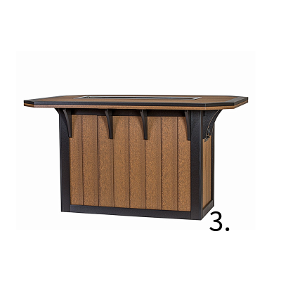 Not into fire pits? Stay effortlessly cool with their poly lumber bar. Designed for convenience, it boasts a built-in storage area for snacks or drinks at the back. Pair your bar with your preferred chairs or stools, and enhance your outdoor experience with optional seat cushions to complete your patio furniture set.